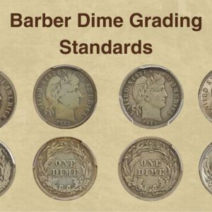 To grade a Barber dime, inspect wear on key high points including the hair, cheek, and leaves. For circulated coins,…