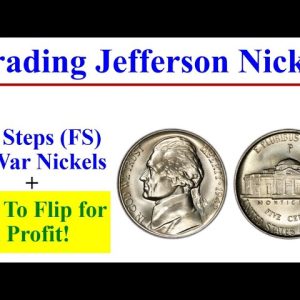 To grade a Jefferson nickel, examine key wear areas: Jefferson’s hair and cheek on the obverse, and Monticello’s columns on…