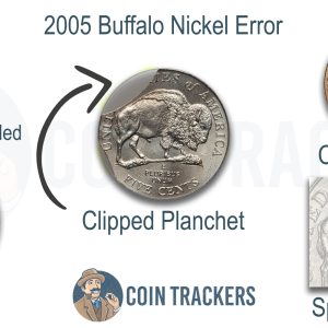 The 2005 Buffalo Nickel features several valuable errors that collectors seek. Common errors include the “speared bison” (a die gouge…